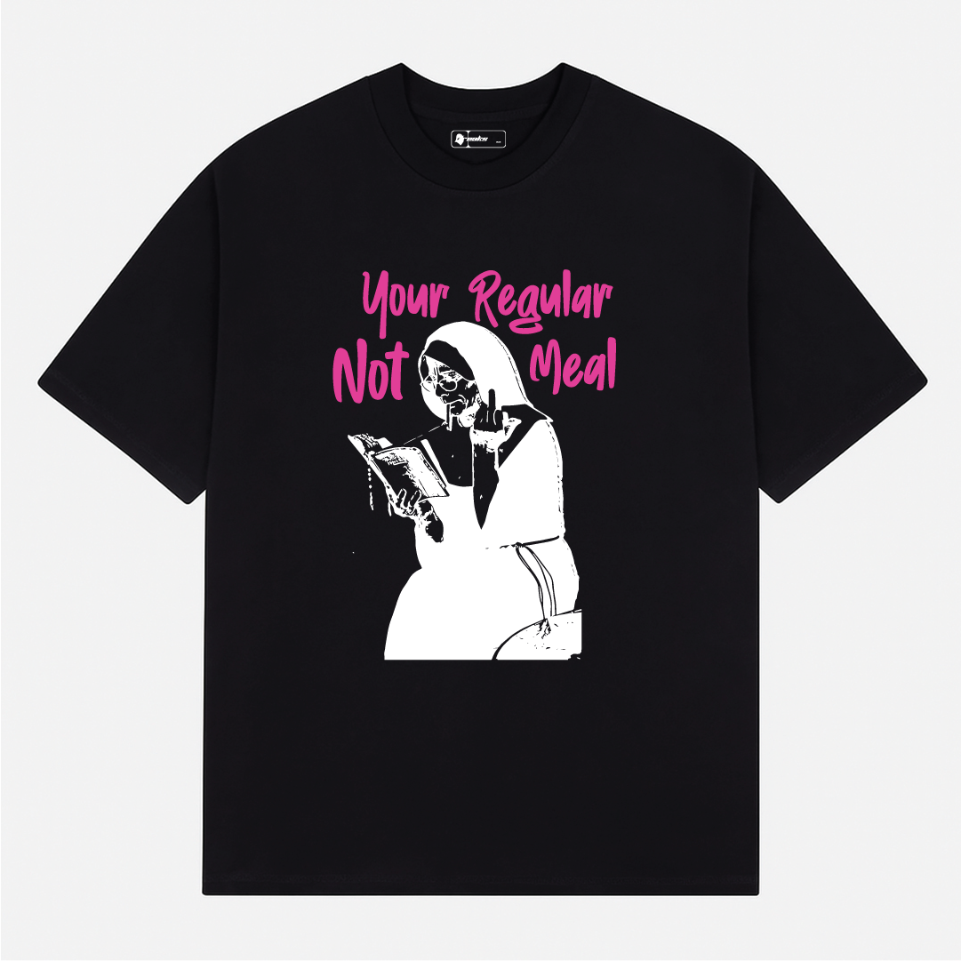 Spice up the basics. The Not Your Regular Meal T-Shirt is a bold streetwear piece for those who know they’re anything but ordinary. With a sharp, witty graphic and premium feel, this tee mixes humor, flavor, and confidence in one bite-sized statement.